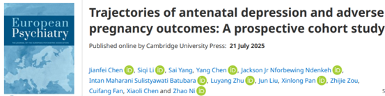 近日,妇幼健康研究中心研究生李思祺作为第一作者在国际知名期刊《European Psychiatry》(JCR一区,中科院二区,影响因子6.7)上发表题为“Trajectories of antenatal depression and adverse pregnancy outcomes: A prospective cohort study”的研究论文。17c
