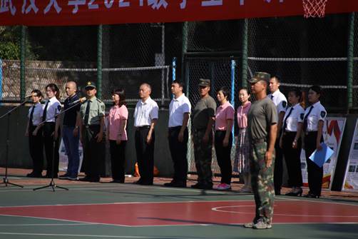党委副书记赵昊鲁,以及军训五团全体教官和指导员出席汇演。指导员唐名阳主持汇演,军训五团连长吴德辉教官主持军训会操汇报。