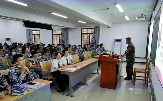 随后,团长方旭东对军训条例进行了详细的介绍,并对同学们的军训生活提出了严格要求。讲话中主要包括对三大主要条例——内务条令、纪律条令和队列条令的介绍,要求同学们严格遵守礼节、军容、着装和军容风纪相关规定。其中,方旭东团长着重讲解了内务条令,对军训期间的日常管理制度做了详细介绍,规定了军训期间同学们请假销假、汇报、查铺查哨等相关事宜。此外,团长还为同学们初步介绍了会操、队列等训练程序,让参训同学对军训入场、整队、口令等建立起初步的概念。
