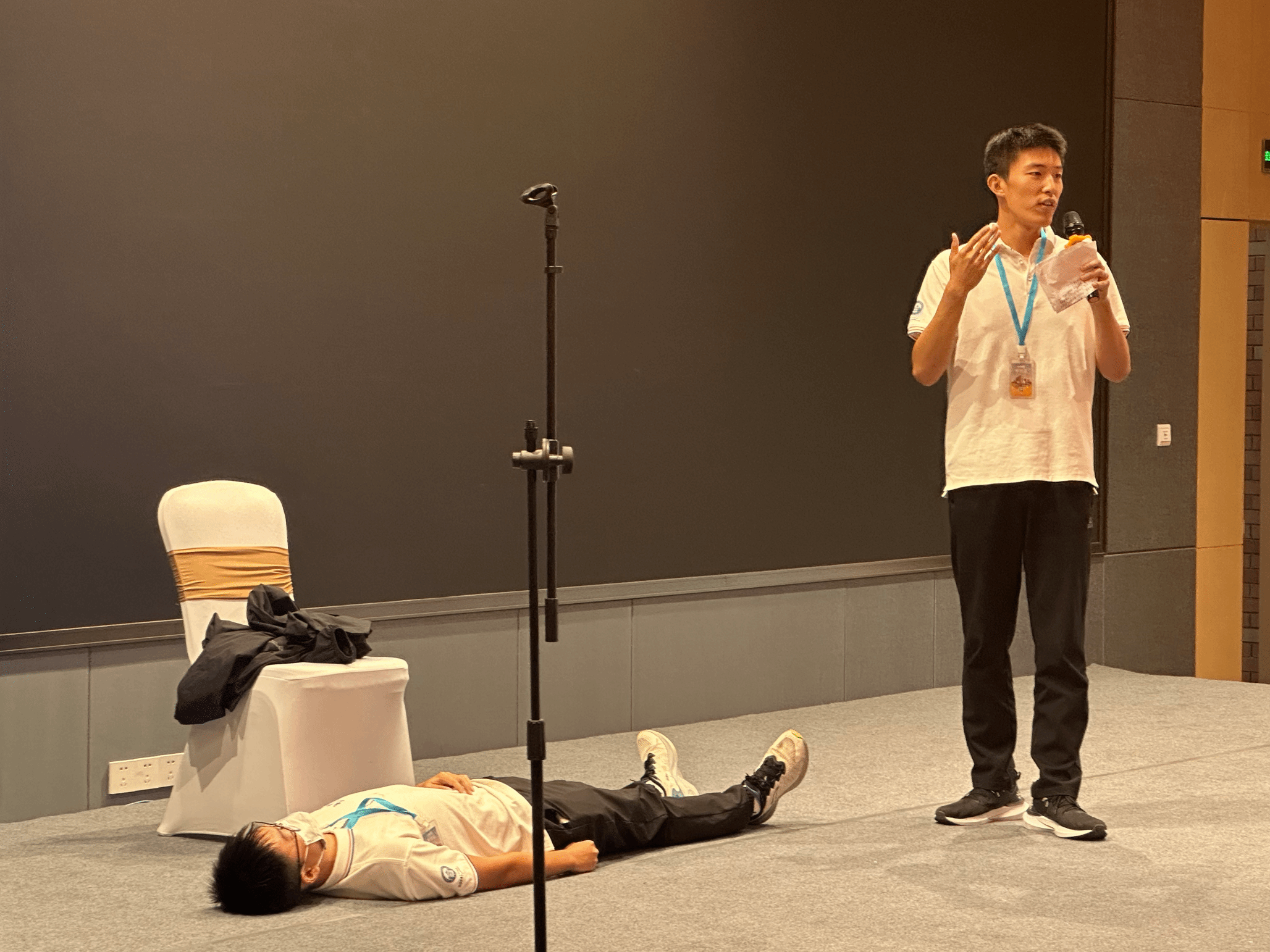 24级的本科生同学们向老人们生动展示了“老人跌倒自救”技巧,轻松愉快教会了老师们“手指操”和“七步洗手法”。老人们积极参与,与同学们积极互动,现场氛围温馨而热烈。