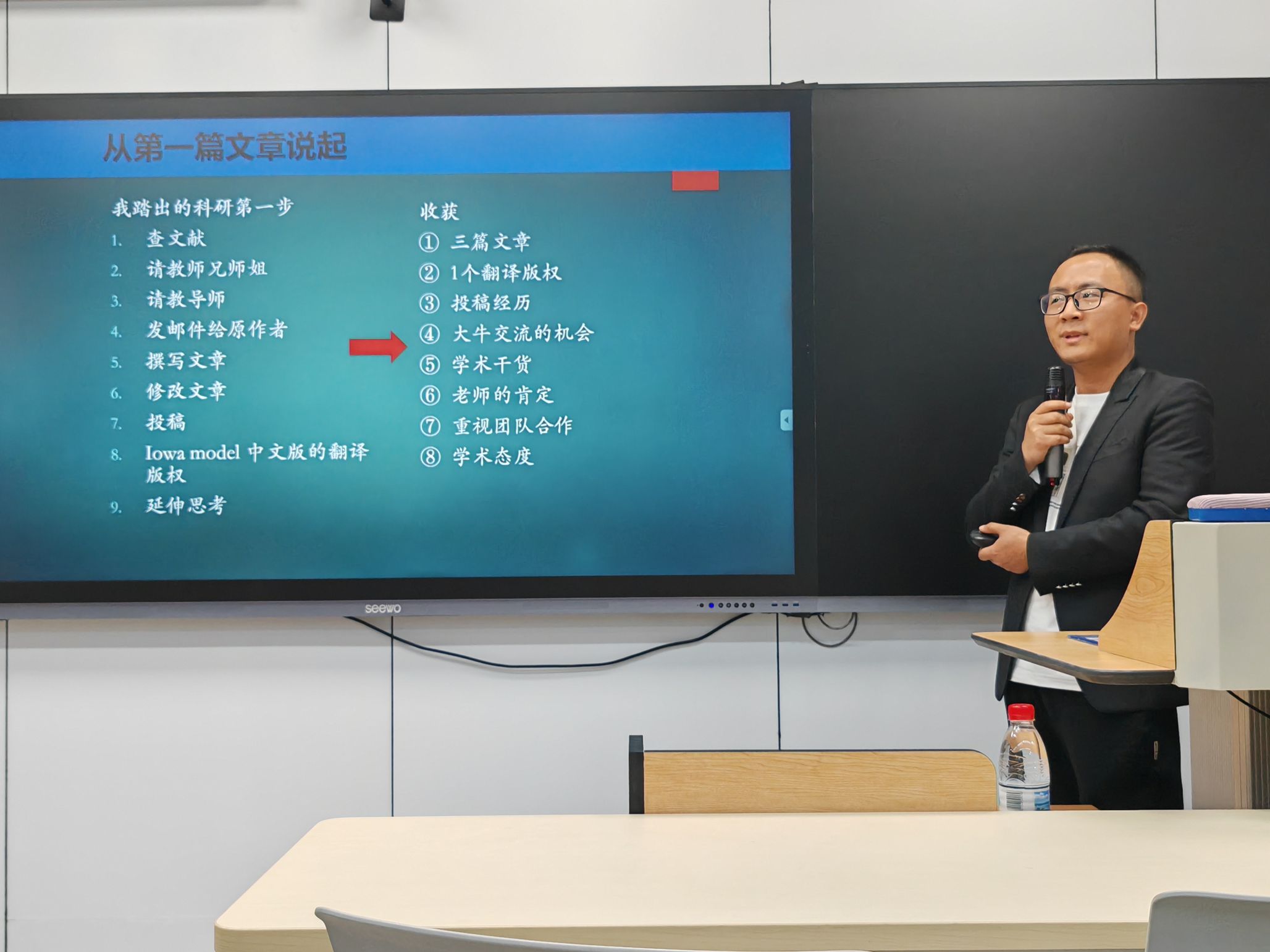 他还讲述了参与学院外事活动、循证护理研究中心工作以及编纂外文书稿等经历,分享在JBI 20周年年会遇到博士生导师从而获得读博契机的故事,阐述这些经历如何帮助他构建起成熟的科研思维和质疑精神,为在场本科生提供了宝贵的个人发展借鉴。