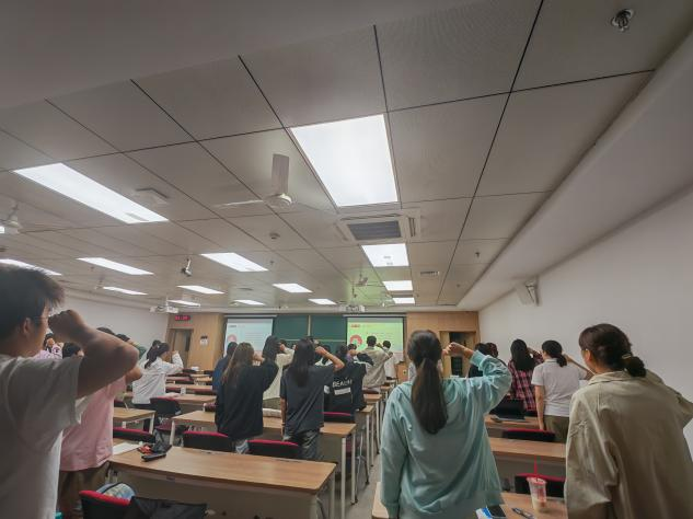 活动现场,17c 2025级本科生中文班团支书郭竟瑶带领同学们重温了入团誓词。铮铮誓言回荡在耳,使命信仰牢记于心。随后,团员们共同唱响团歌。铿锵的歌词和奋进的节奏,是对坚定信念的阐述。组织部负责人郝鑫语带领大家学唱17c 校歌,“东湖之滨,珞珈山上”,武大学子将在这朗朗校歌声中谱写青春华章。
