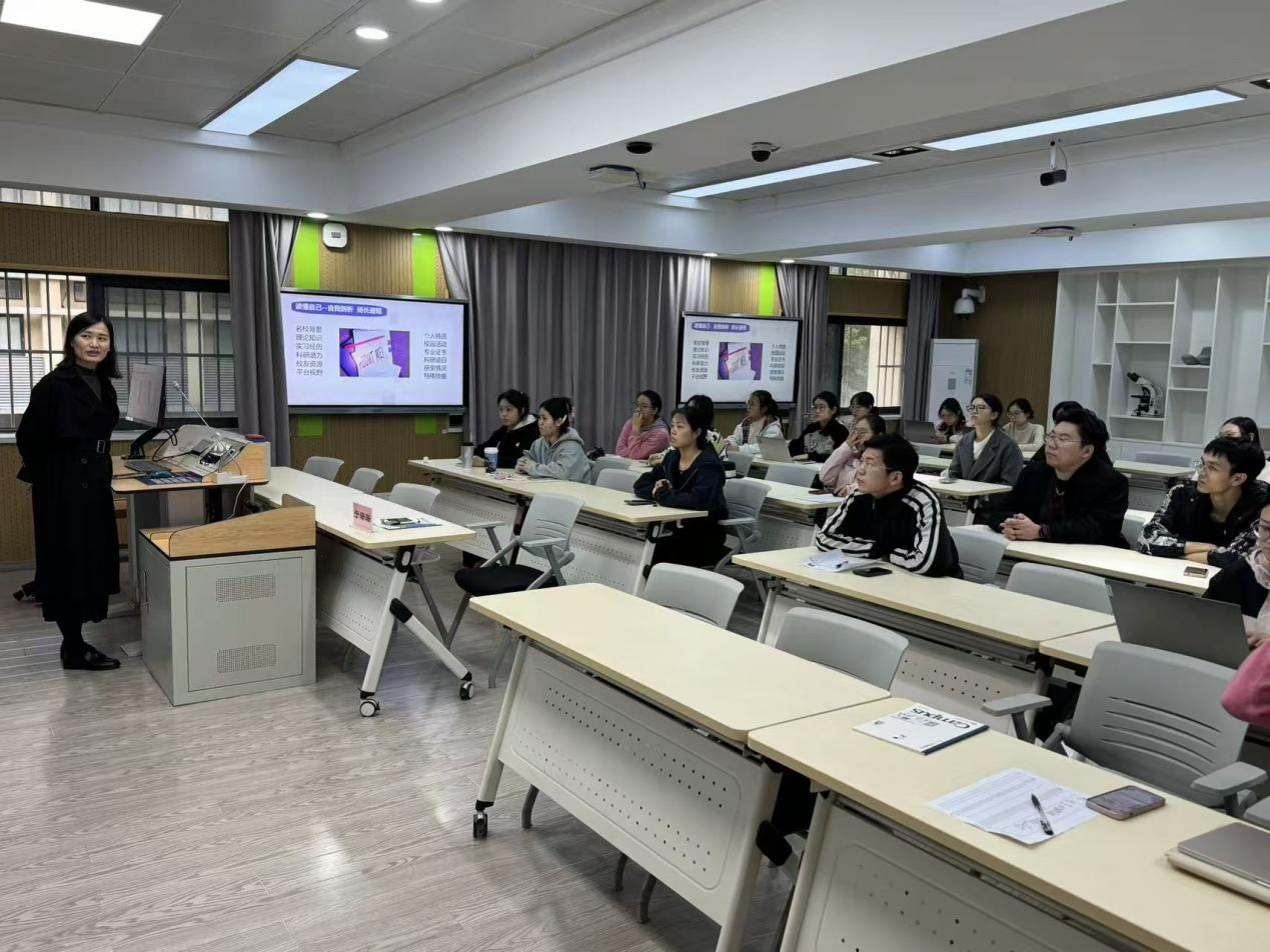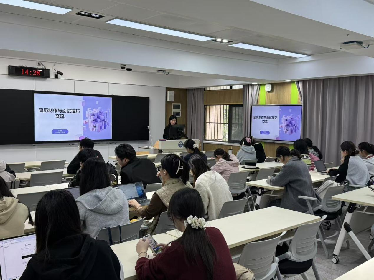 中南医院人事处于姗姗老师担任主讲人,学院毕业年级学生线下参与,现场交流氛围浓厚。