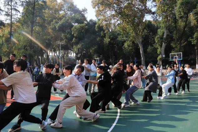 田赛、拔河与教职工赛场亮点纷呈。女子跳高项目中,赖天霓稳步助跑、腾空过杆,一次次突破自我高度,赢得全场欢呼;拔河赛场里,健儿们紧握粗绳、身姿后倾,呐喊震彻云霄,用众志成城的力量诠释团结真谛。教职工方面,学院老师组队参与八段锦团体比赛,他们身着统一服装,伴着悠扬音乐凝神静气,招式刚柔并济、整齐划一,尽显从容气韵与团队默契,最终斩获三等奖。