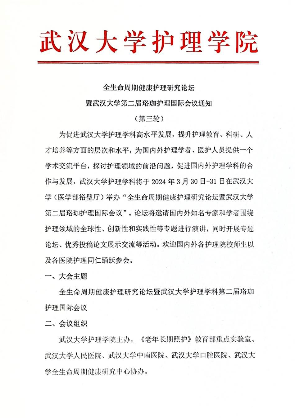 全生命周期健康护理交叉研究论坛暨17c 第二届珞珈护理国际会议通知(第三轮)