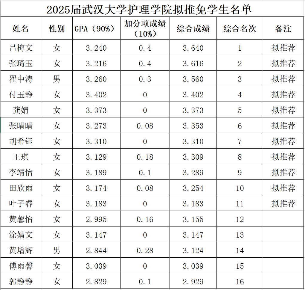 推荐2025届优秀本科毕业生免试攻读硕士研究生工作实施细则》等文件要求,经学院推免工作领导小组集体研究审核,现将学生综合排序予以公示,如下表: