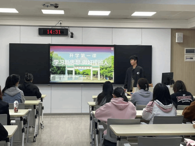 首先,喻惠丹老师为大家进行了“学习新思想,做好接班人”主题授课。结合自身经历及生活经验,喻老师将先进思想生动有趣地传达给同学们。喻老师提出,“作为新时代的新青年,我们应当紧握时代机遇,珍惜时代的馈赠,不断发力向前,做有理想、有担当的接班人。”在喻老师的鼓舞下,同学们自发热烈的掌声。随后,毛诗柔老师就学校赏樱政策对同学们进行相关精神传达,希望大家能够增强主人翁意识,助力爱护校园,通过正规渠道反馈问题。此外,毛老师还带领大家一同查看了学院推免政策,期望大家新学期不负时光,砥砺前行,享受大学时光的欢愉与学习的奋进。最后,刘茜老师对班会进行总结性发言,进一步强调同学们应该树立目标意识,对自己的学习生活负责,力争为大学时光交上满意答卷。时光如白驹过隙,新的时刻总在到来。本次班会在新学期起点为同学们明确目标、做好规划提供了帮助。期待同学们在新的时光里,一定会有新的收获。