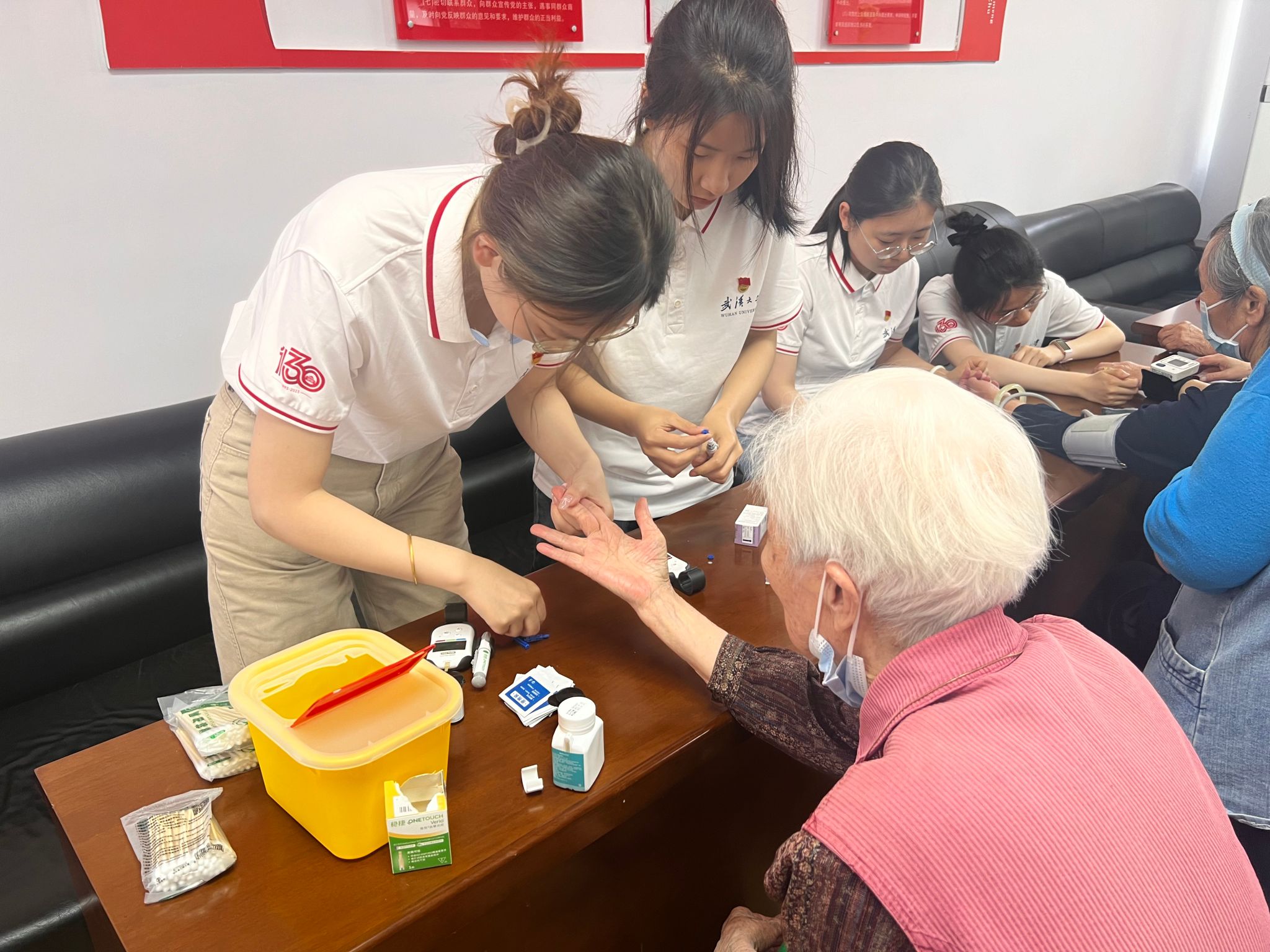 活动结束后,还为老人们提供了义诊服务,测量血压、检测血糖,耐心解答他们的健康疑问,协助福利院工作人员将老同志们安全送回房间,获得老人们和工作人员的一致好评。