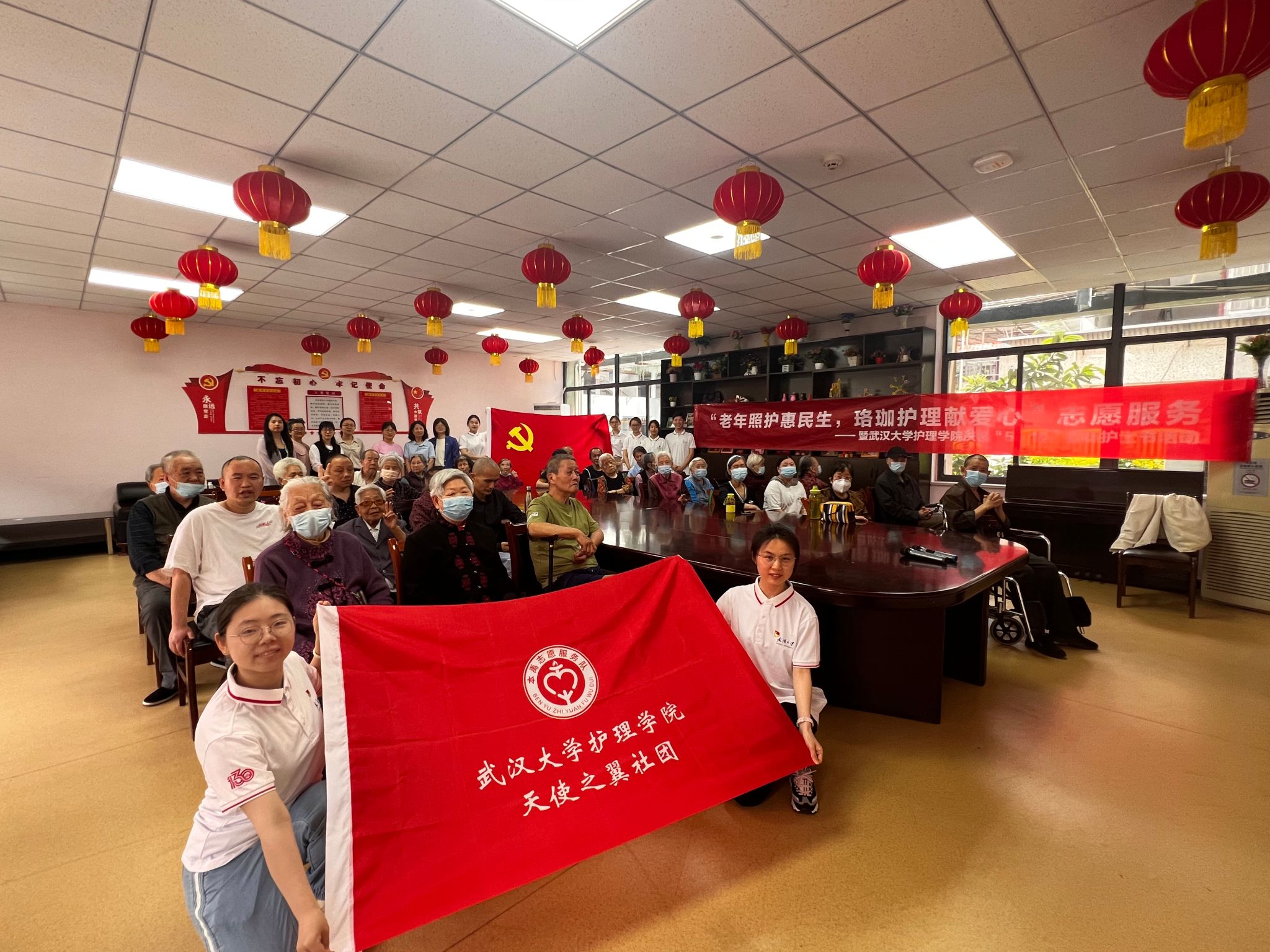 党委组织教职工党支部和学生第一党支部创新工作方式,联合“天使之翼”志愿服务队,在第113个国际护士节来临之际,以结对共建为契机,于5月9日与武昌区社会福利院党支部举办了“老年照护惠民生,珞珈护理献爱心”志愿服务活动,用实际行动践行南丁格尔精神。武昌区社会福利院院长张秋果、17c