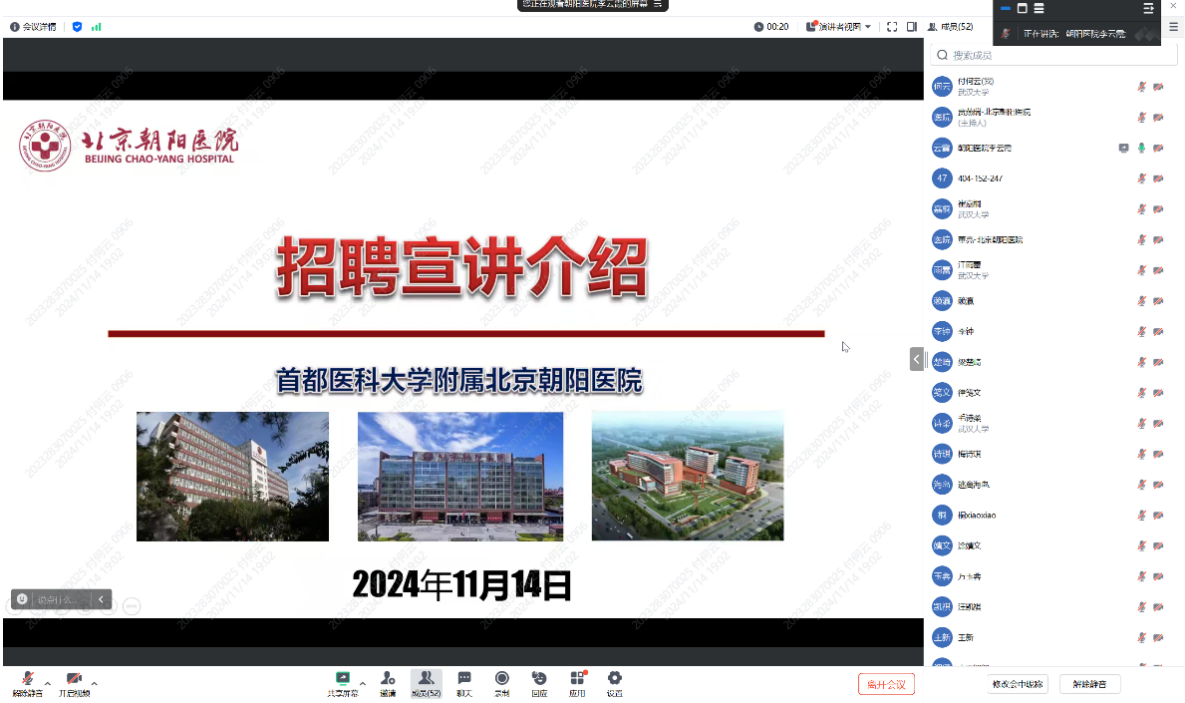 宣讲会由两位资深老师主讲。首先,医院人事部李云霞老师以详实的数据和生动的案例,全方位地展现了北京朝阳医院的历史底蕴、医院文化以及近年来取得的辉煌成就。她强调,作为一家拥有深厚文化底蕴的综合性医院,我们始终坚持以人为本的服务理念,关注员工的成长与幸福,致力于为患者提供最为贴心的医疗服务。