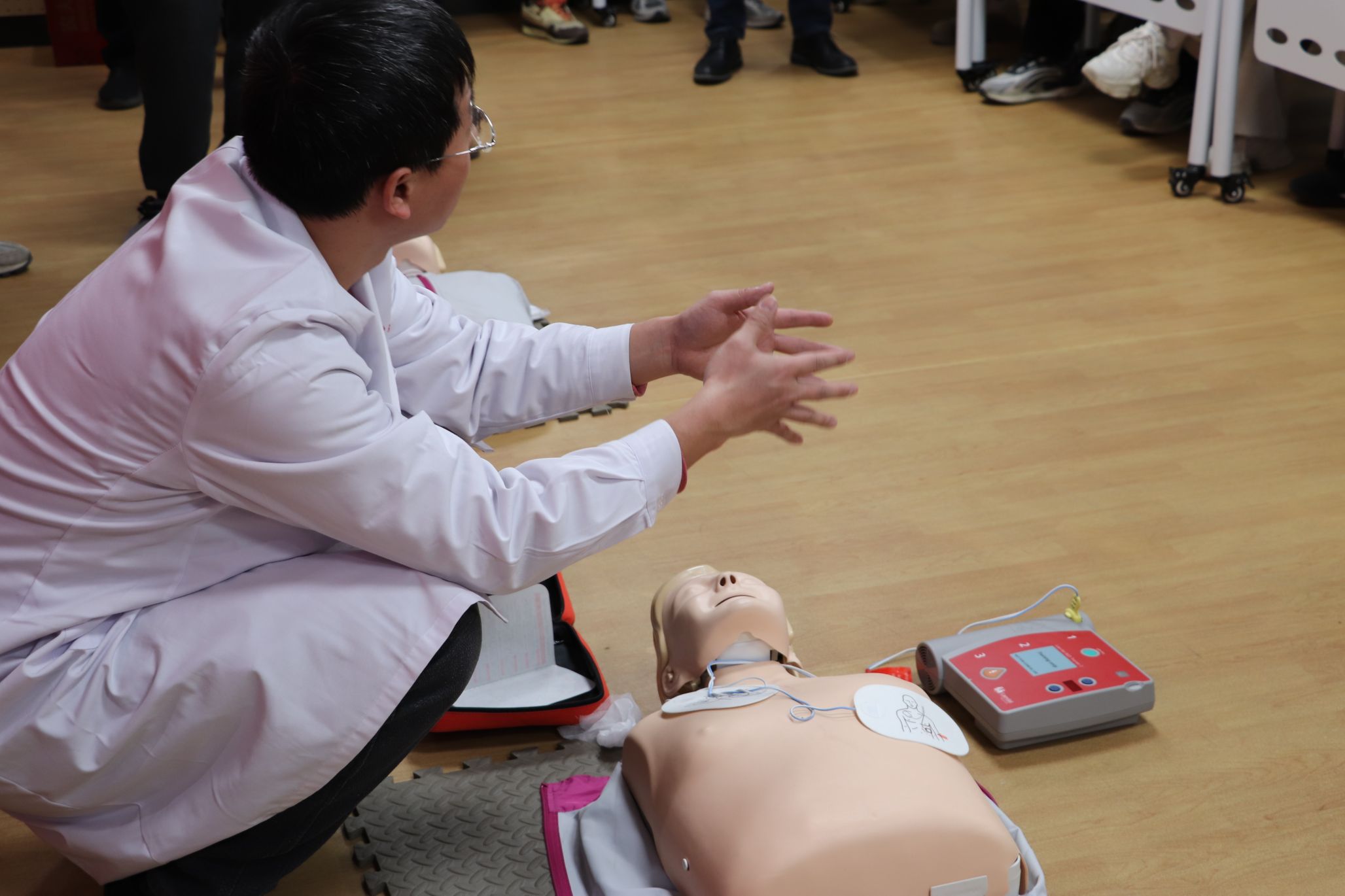 活动伊始,张旭凭借其深厚的专业素养和扎实的急救知识积累,有条不紊地详细讲解并现场演示了心肺复苏(CPR)和海姆立克急救法这两项关键急救技能的核心要点。他特别强调,这些技能对于维护校园安全、保障师生生命健康具有重要意义。此外,张旭还规范而清晰地展示了自动体外除颤器(AED)的操作流程,为老师们呈现出一套完整、实用的急救操作体系。