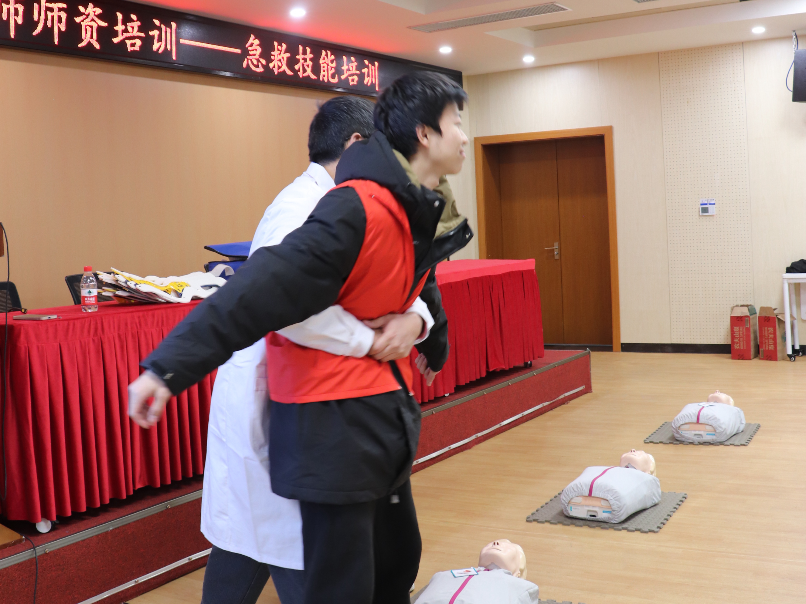 为增强参训人员对海姆立克急救法实际操作的理解,张旭特意邀请了学生志愿者上台配合,通过生动的现场演示,将理论知识与实践操作紧密结合,帮助老师们更好地领悟与掌握这一重要急救技能。
