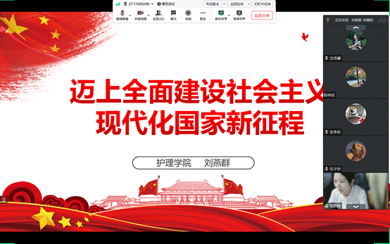 为深入学习贯彻习近平新时代中国特色社会主义思想,落实学校主题教育工作总体部署,8月8日,刘燕群副院长以“迈上全面建设社会主义现代化国家新征程”为题,在线上为学生三支部全体党员、入党积极分子讲授专题党课。本次专题党课由学生三支部书记王丽主持。