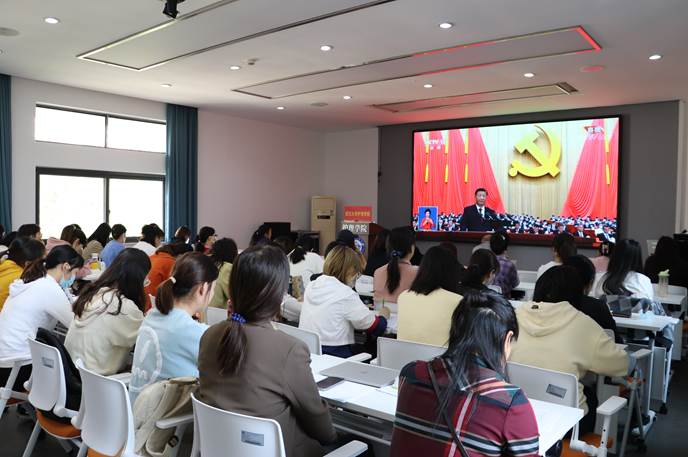 党政领导班子和部分师生党员共60余人集体观看现场直播盛况,认真聆听了习近平总书记代表中共中央十九届委员会所作的题为《高举中国特色社会主义伟大旗帜 为全面建设社会主义现代化国家而团结奋斗》的工作报告。