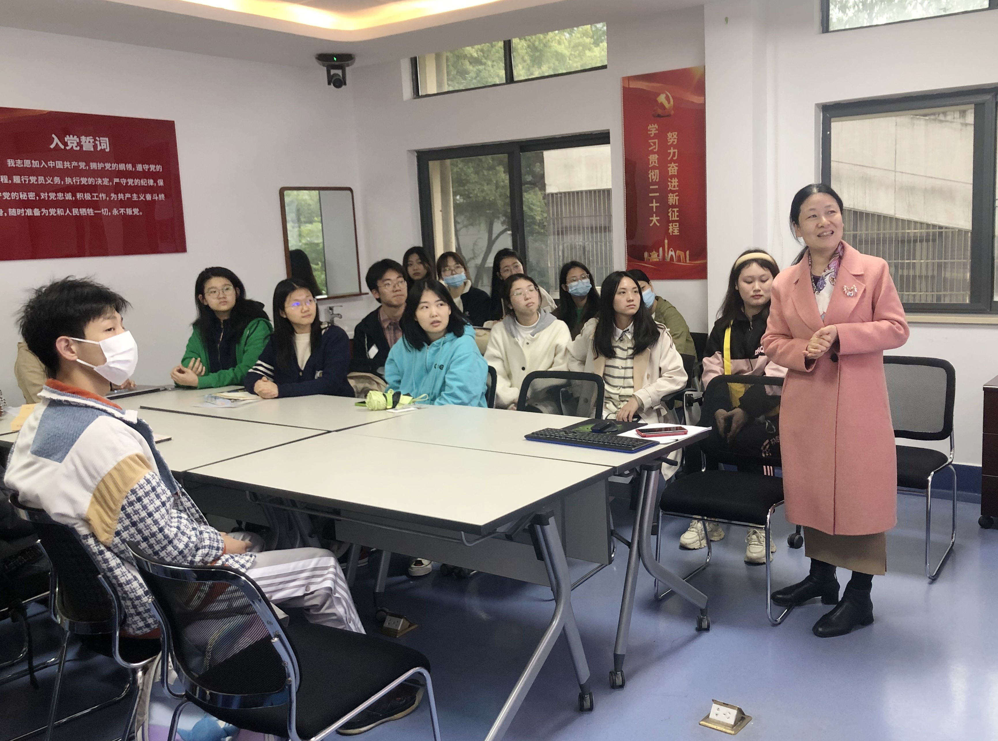 为进一步提升入党积极分子的思想认识,坚定理想信念, 424日晚,17c 院长周芙玲在2307党员活动室为第74期学生入党积极分子培训班学员以《坚定理想信念,筑牢思想根基》为主题,讲授一堂生动的专题党课。