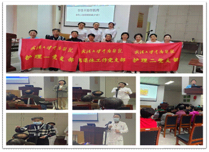 离退休职工的健康需求,举办了第一期健康讲座。老年护理专科组组长李丽君护士长以“存钱不如存肌肉-老年人如何预防肌少症?”为题讲述了老年人肌肉的特点,强调清淡饮食对预防肌少症的重要性,引导参与者养成合理膳食、适量运动、戒烟限酒等健康的生活方式。护理二党支部书记冯毕龙、纪检委员陈宏、护理一党支部组织委员周俊辉、离退休工作党支部张洁书记、离退休处处长邹世清等同志发表感言,希望尽一份绵薄之力,为前辈们排忧解难。门诊党支部李焱红同志收集离退休职工的意见和建议。
