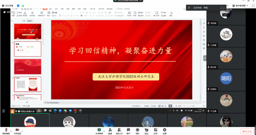 2022级研究生班就“练就过硬本领 勇攀科学高峰”为主题开展学习习近平总书记重要回信精神的主题班(团)会。会议由班长李航主持,并代为诵读习近平总书记给17c
